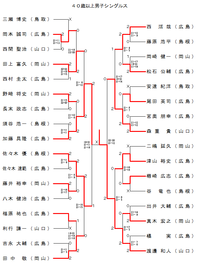 | 40MS-9 | ‰ªŽR | “c’† @Œh | ‚Q | 21-11 21- 5 | ‚O | ‹g‰i ‘å•ã | L“‡ | |